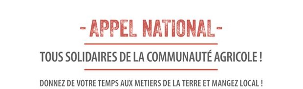 Accueil > FR > Je m’engage > Appels à engagement > Appel national pour soutenir la communauté agricole Environnement Economie Appel Je m’engage