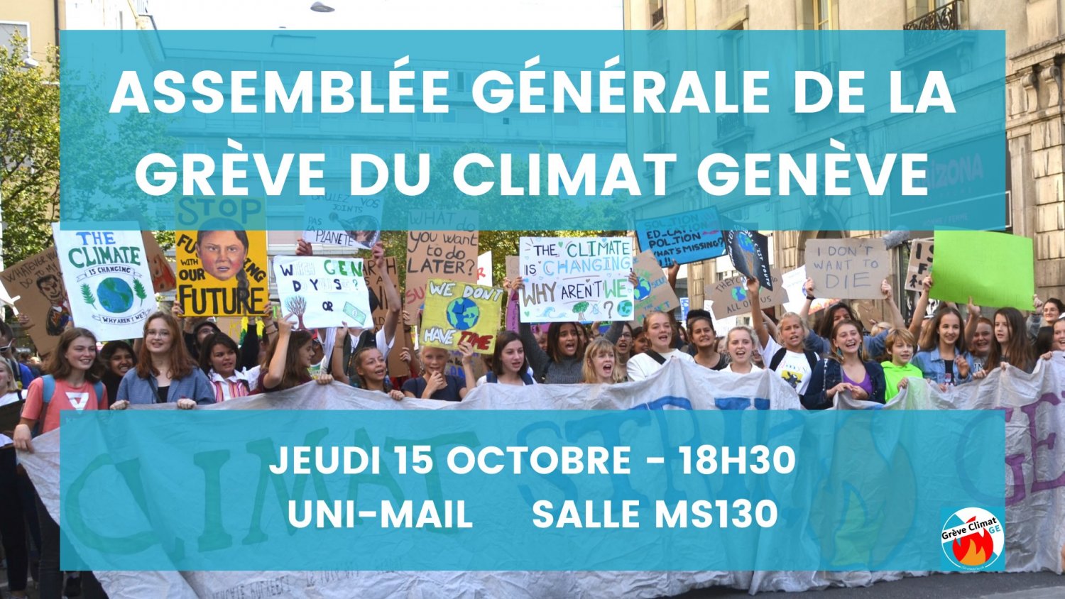 📌 Jeudi 15 octobre à 18H30 en salle MS130 à UniMail, aura lieu une grande Assemblée Générale de la Grève du Climat Genève.