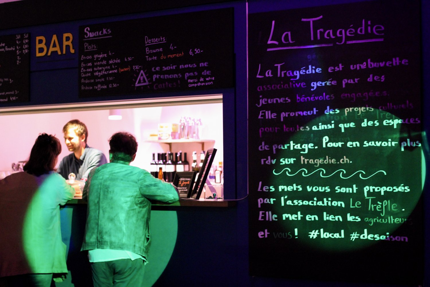 En cas d’imprévu ou de problème, envoie au plus vite un mail à benevoles@tragedie.ch et à ta ou ton responsable bar.