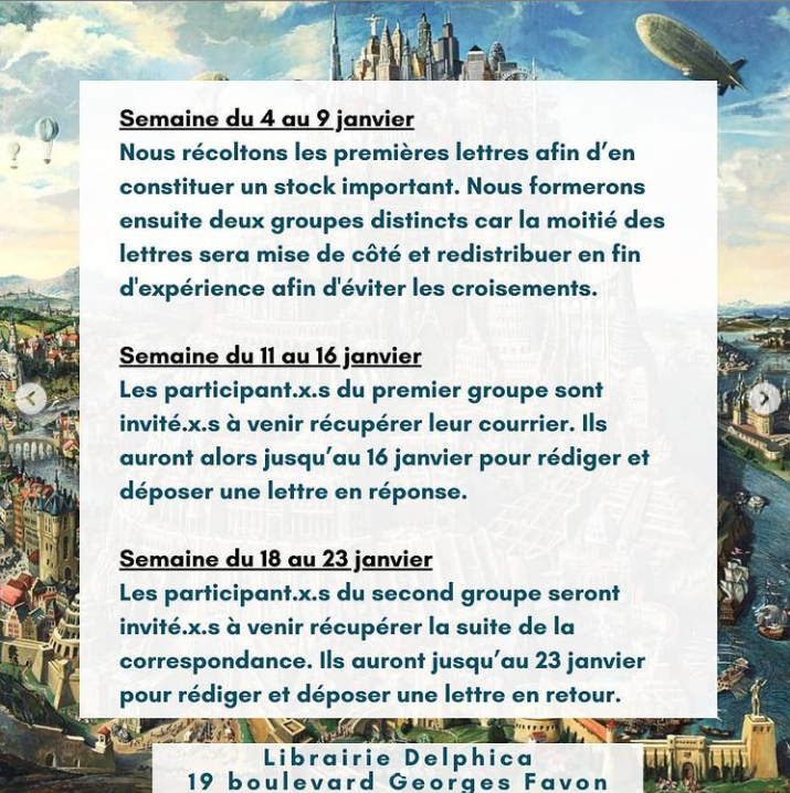 ▶️ Pour y participer, il suffit d’écrire sa première lettre et de la faire parvenir avant samedi 9 janvier 17h00 à la librairie Delphica.
