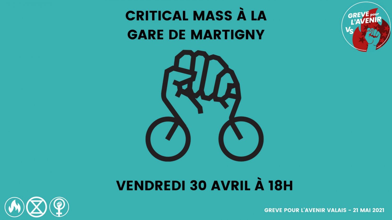 La grève pour l’avenir Valais s’associe à la Critical Mass de Martigny pour une critical mass spéciale.