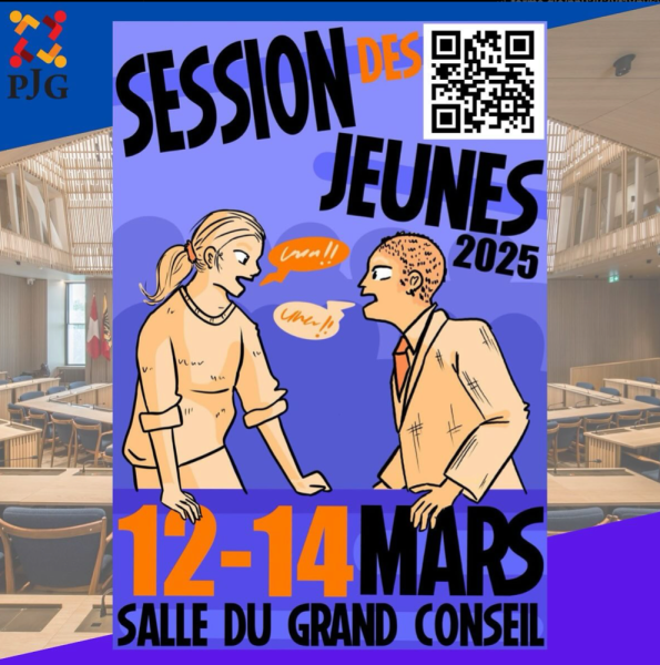 La Session des Jeunes est une simulation du Grand Conseil organisée par le Parlement des Jeunes Genevois (PJG) qui aura lieu du 12 au 14 mars 2025.