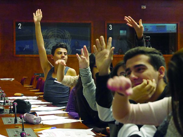 Agenda 2019-2020 des conférences de presseCette activité de la Fondation Eduki propose aux jeunes de se rendre à l’ONU en tant que journaliste en herbe et d’assister à une conférence de presse organisée spécialement pour eux. Une modératrice et des experts de diverses organisations internationales réalisent un point d’actualité et répondent aux questions des élèves.