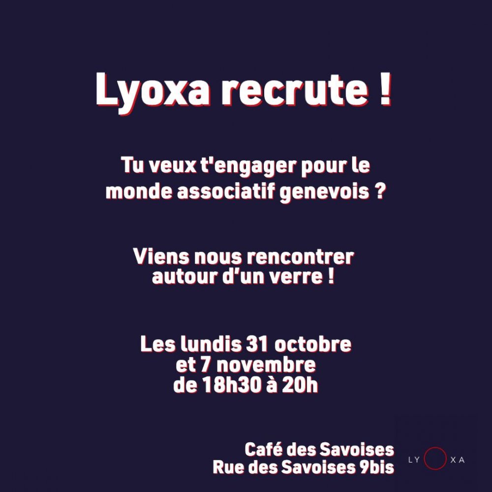 🙋♀️🙋Tu souhaites t’investir dans le monde associatif genevois ? Bonne nouvelle, Lyoxa est en quête de nouveaux talents !
